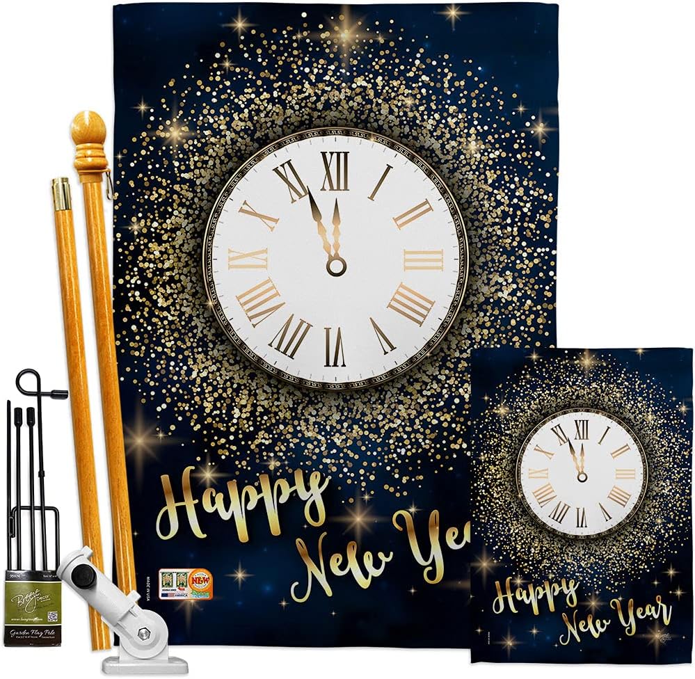New Year Beautiful Large House Flag, Wooden Flagpole And Bracket – Wall Mount Complete Set with Wood Banner Dowel with String - 2" x 32" HangerBreeze Decor have variety of House Flag Set for all occasions. Uniquely design for hanging indoor or outdoor use. We are committed to offering you exceptional values. Our customers enjoy displaying our House Flag Set for longer periods. Specification: Theme: New Year Size: House Flag Set 28" x 40" Size: Decorative FlagPole With Adjustable Angle Flag Bracket Print: Double-Sided Readable: Readable Both Sides Material: Weather Resistant 3 Layers Blockout Stitching: Double Stitched Display: Vertical Hang Type: Sleeve Artist: Schal Lee Special Features: Origin: Made In USAPackage Include: 1 pc x Large House Flag 28" x 40" 1 pc x Decorative Flag Pole 1 pc x Adjustable Angle Wall Mount Flag BracketFor more than a decade, we’ve been dedicated to manufacturing flags with no comparison in quality and beautiful designs. Our flags are made with our Pro Guard material that is soft to the touch and designs can be read correctly on the flag. A feature that our customers will love. We are committed to using eco-friendly inks that won’t leave a foot print in our environment. MPN: BD-NE-HS-116011-IP-BO-03-D-US18-BD 16011 66011